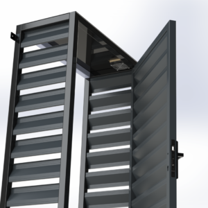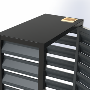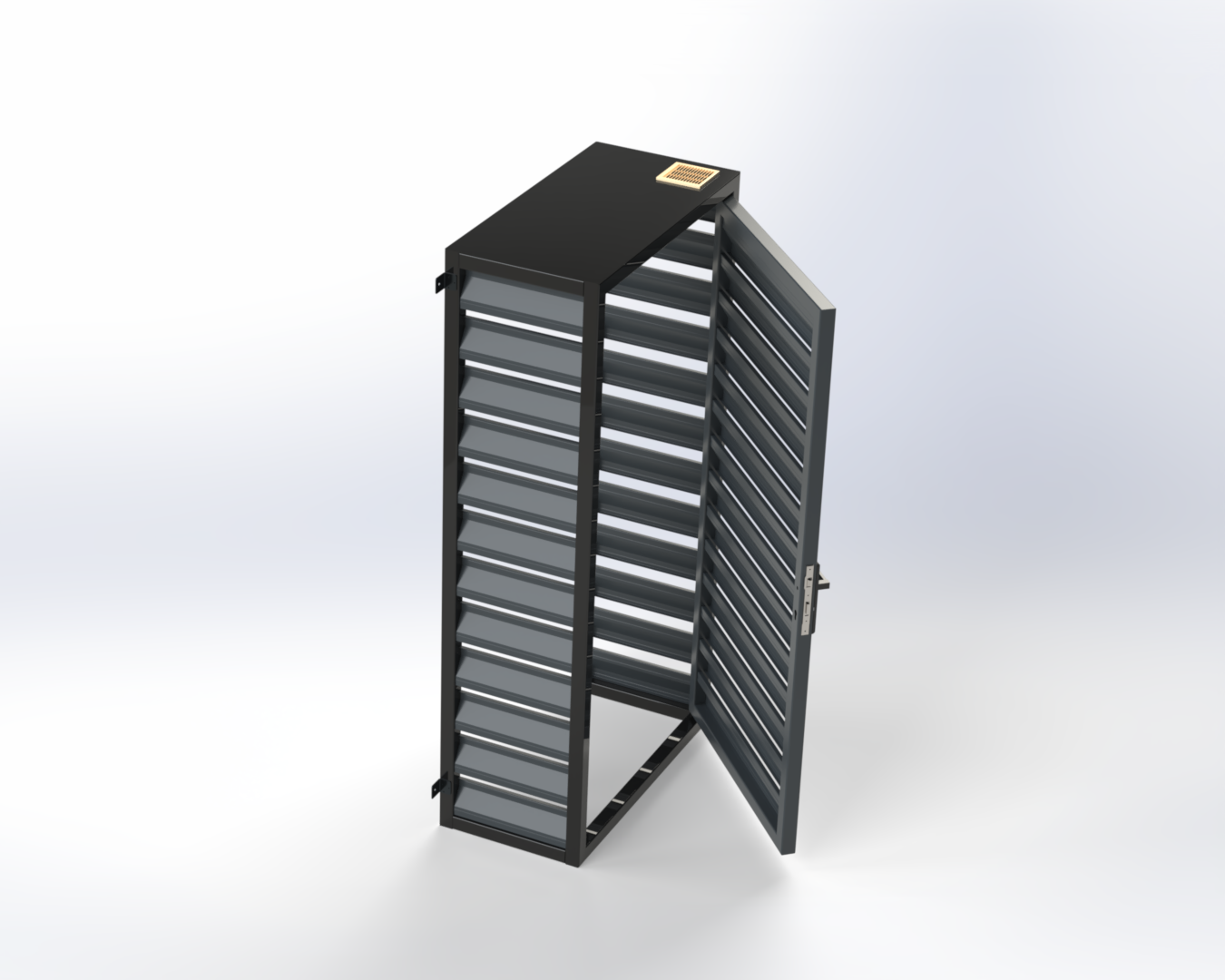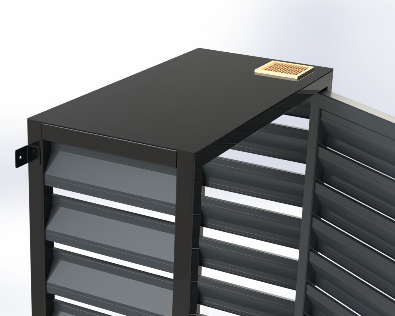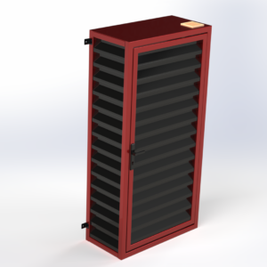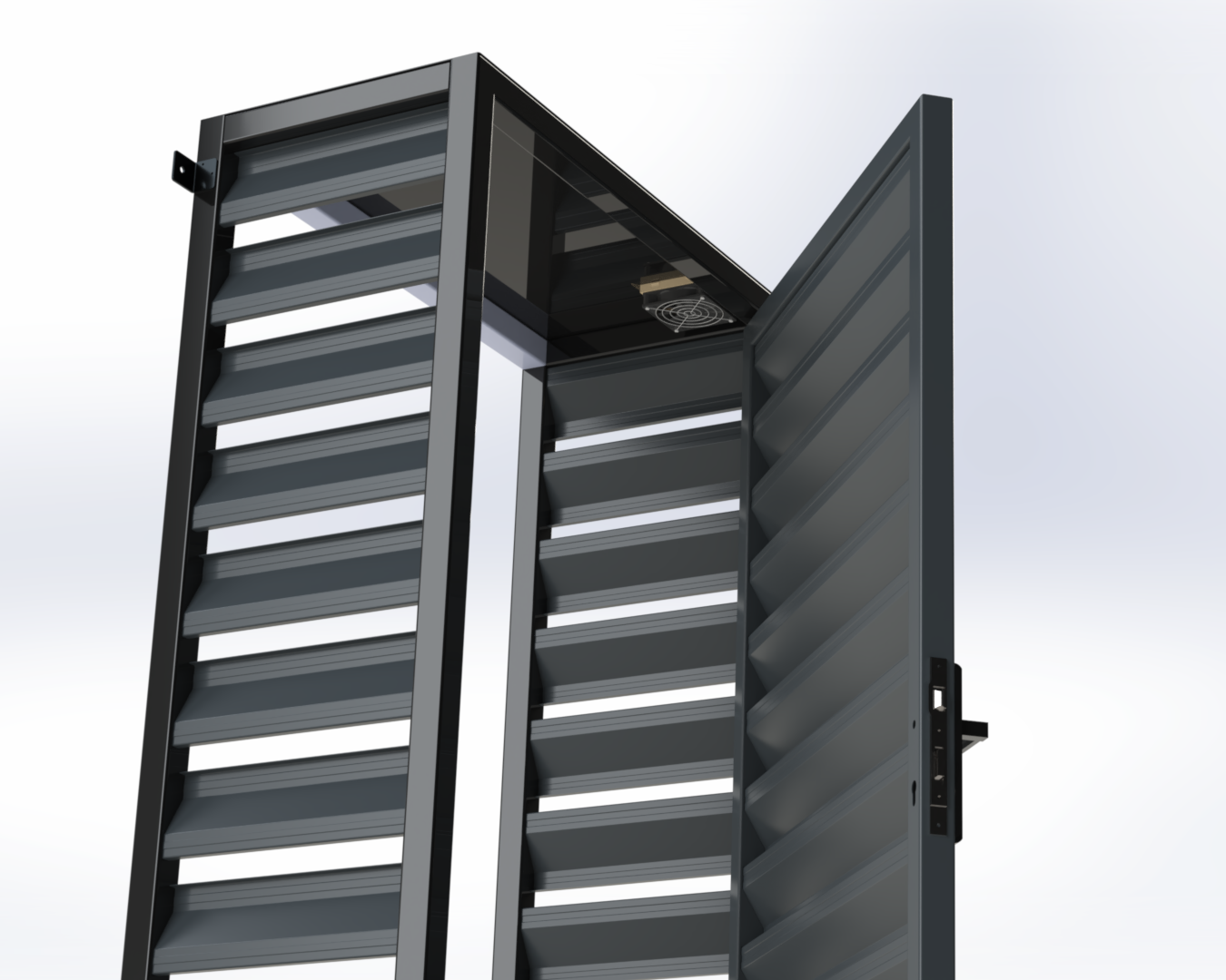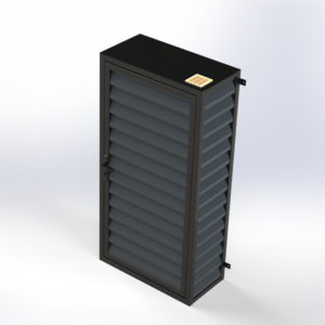 The louvered design ensures adequate internal air circulation, supporting the safe operation of the equipment.