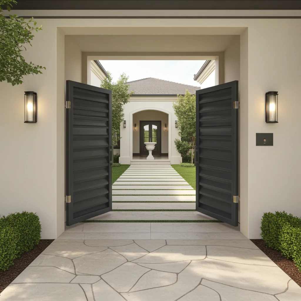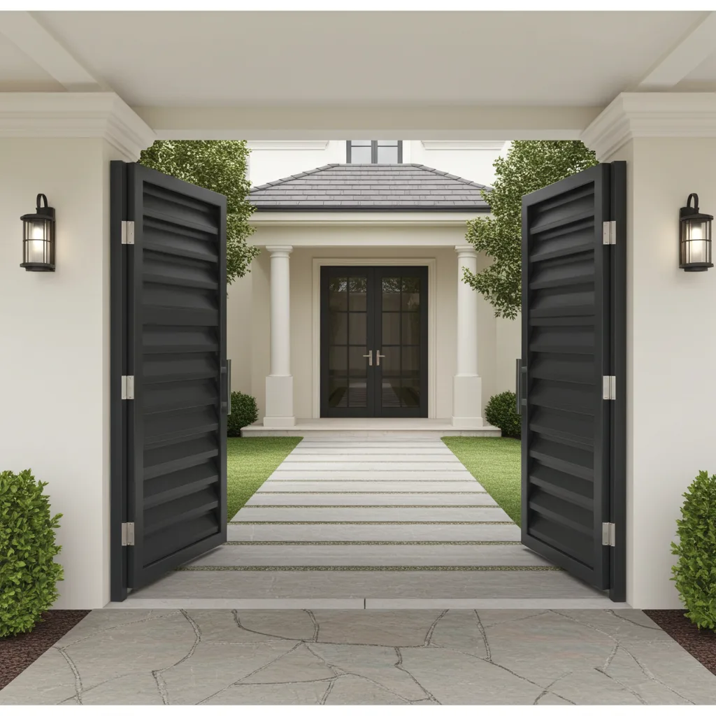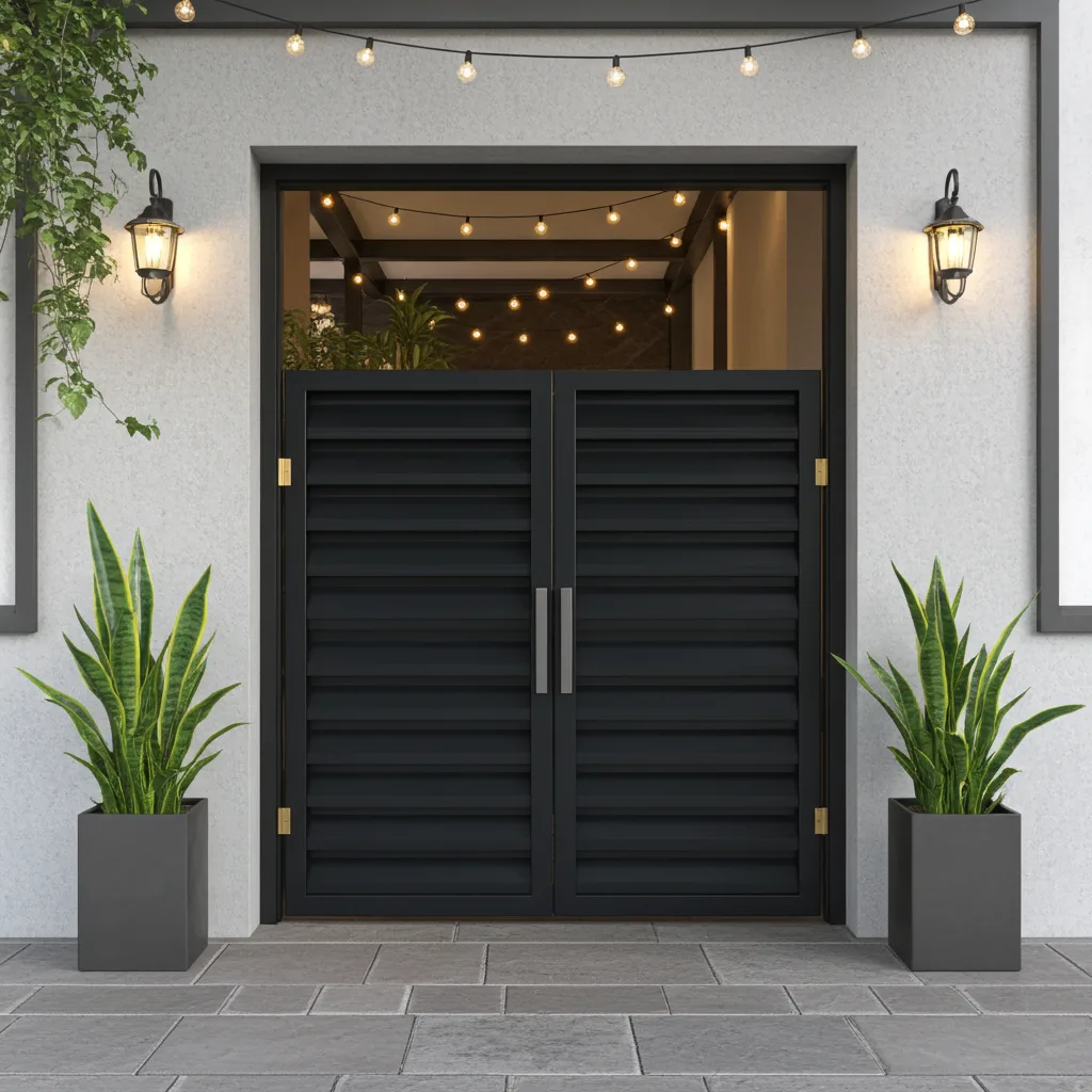 Le modèle Texas offre une solution à la fois esthétique et fonctionnelle dans les zones à forte circulation bidirectionnelle, telles que les terrasses de restaurants, les passages d’usines, les entrées de villas et de résidences. Avec son détail de poignée élégant, sa structure de charnière robuste et ses lignes modernes, il attire l’attention dans tous les environnements.